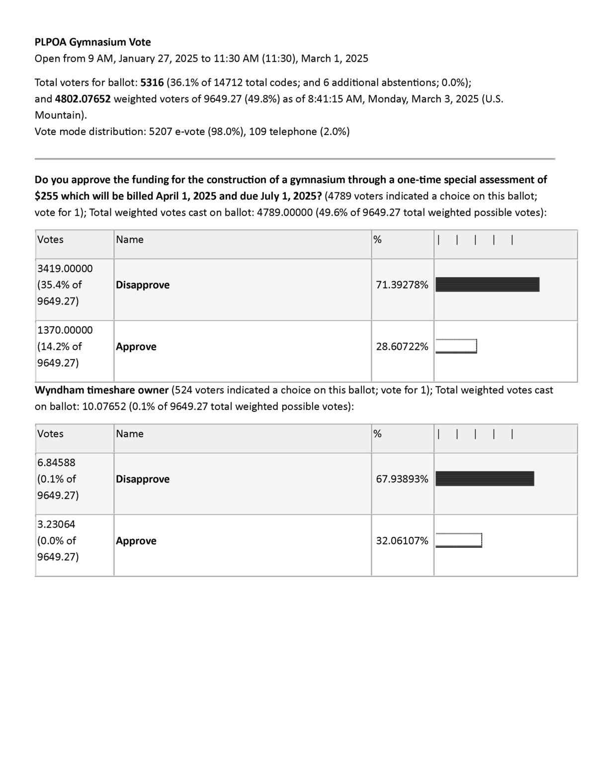 Gymnasium official vote results - March 2025